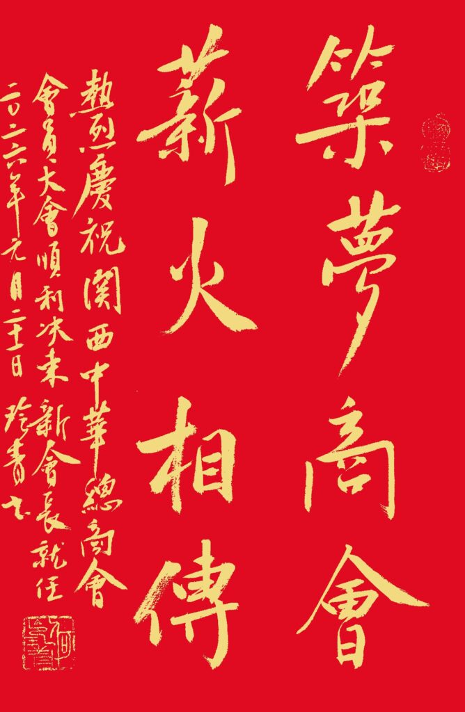 あわせて、何名誉会長より関西中華総商会に寄せた揮毫と対聯が披露され、商会の今後の発展を願う思いが込められたその言葉に、会場は温かく厳かな空気に包まれました。